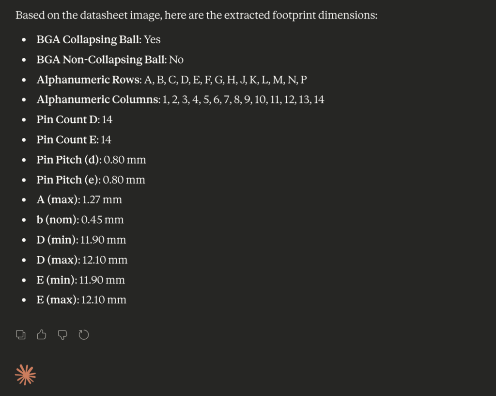 From our tests, it’s clear that the biggest bottleneck in automating footprint generation is accurately capturing the exact shape of the patterns with correct scaling which remains unresolved, even in the latest AI models.